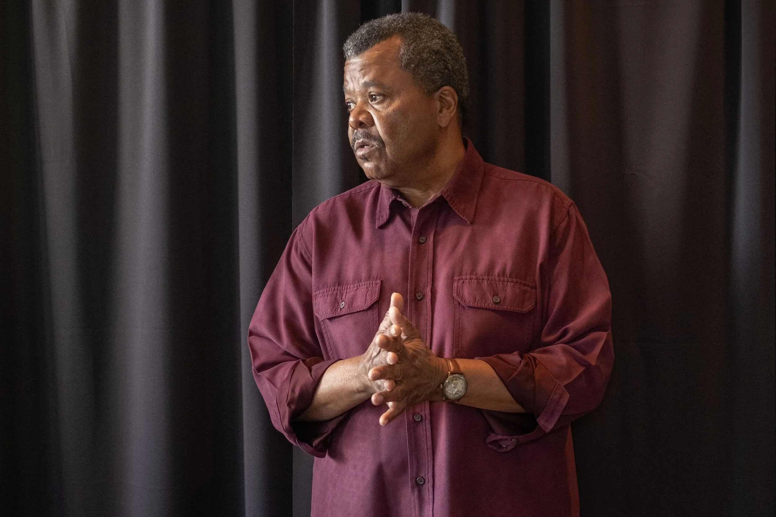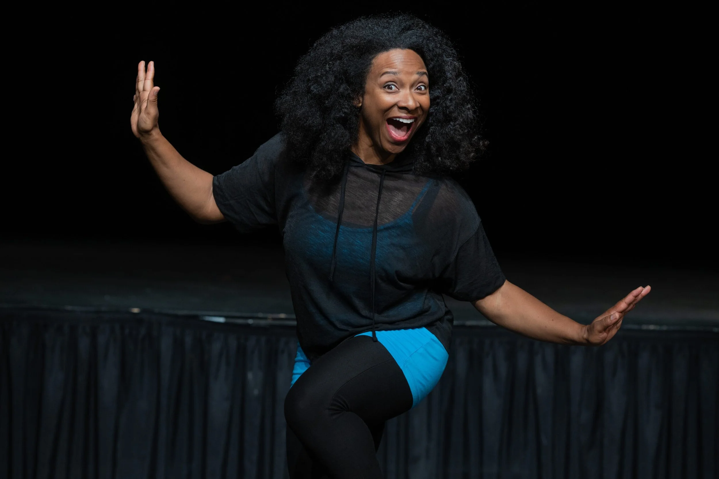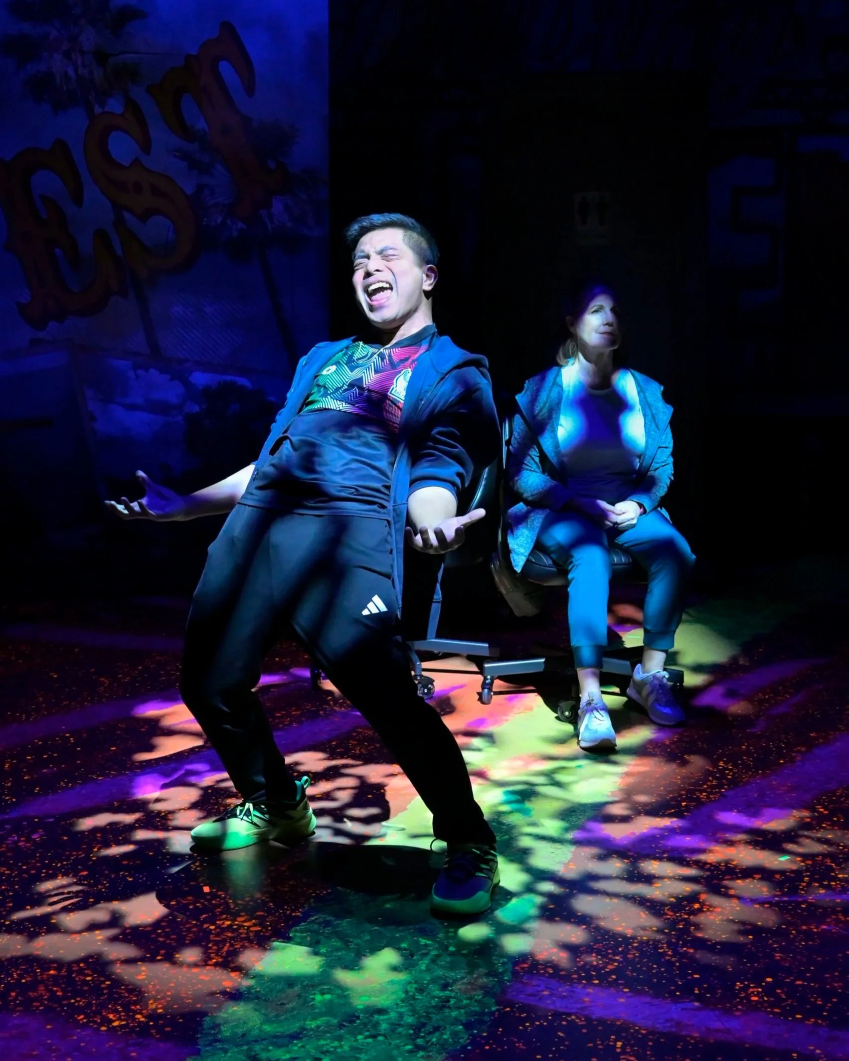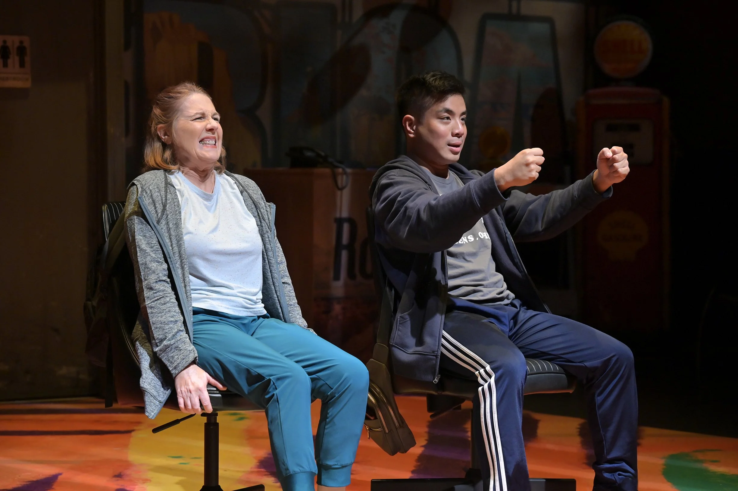 “Flex” by Candrice Jones, directed by Margo Hall, scenic design by Bill English, lighting by Ray Oppenheimer, costumes by Jasmine Milan Williams, and sound by Ray Archie, at San Francisco Playhouse.