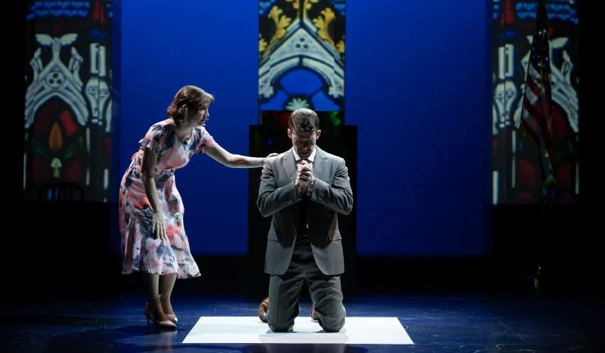 Joel Ochoa’s vivid performance as the 17-year-old, clever gay son Billy, provides the jolt for the family’s collapse. He’s “gay as the nineties,” but the gut-punch comes when Billy confronts his father. Their contact is physical and threatening, tearing another veil from their conformist life. Like Oedipus, they have been living a lie.