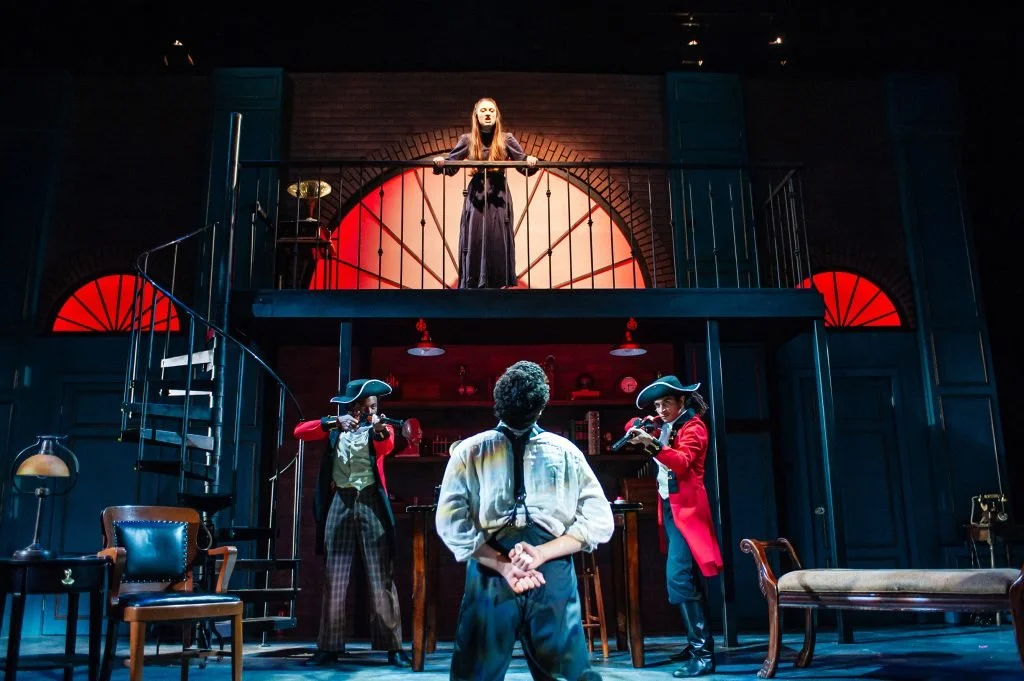 - Eliza (Jillian A. Smith) fantasizes punishment for Professor Higgins (Adam Magill) at the hands of a firing squad (Kareem Jenkins & Chachi Delgado).