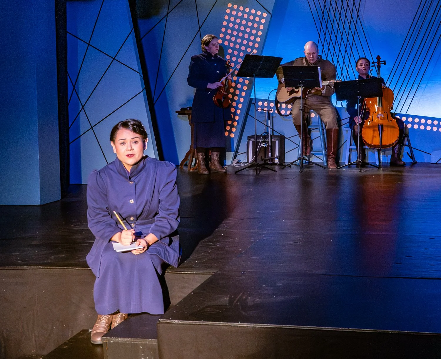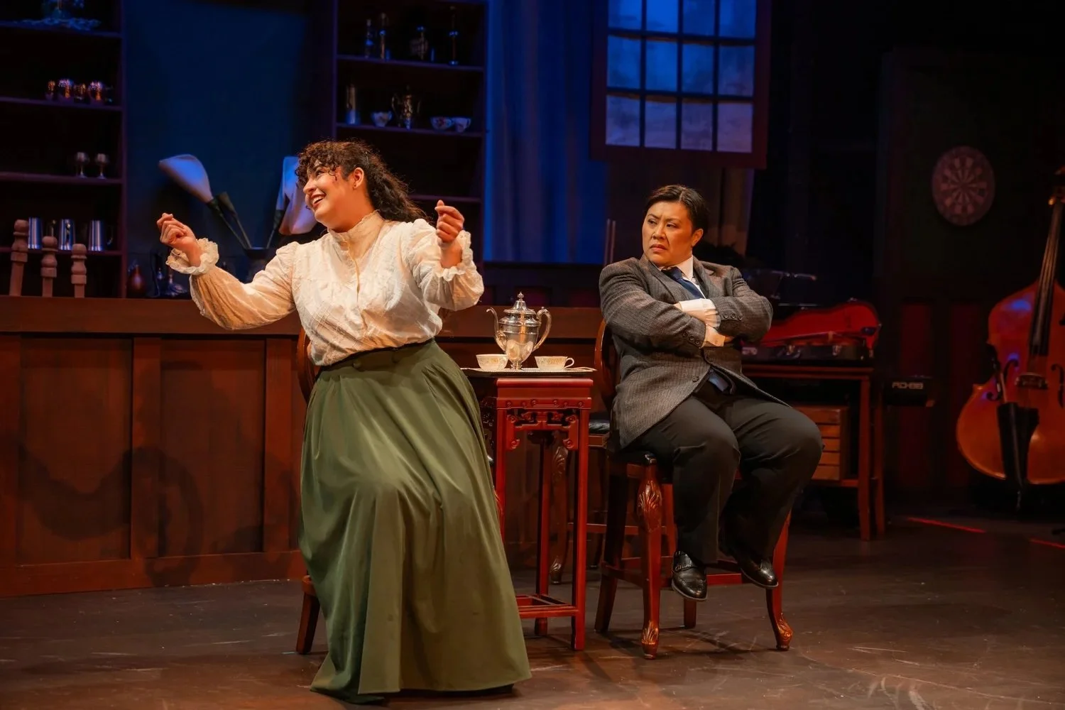 Alana Wagner stands out as Ida Green, the company’s dedicated and talented costume designer. Her Shakespeare monologues land with quiet force—shoulders squared, voice grounded, gaze steady. Ida is determined to demonstrate the power of one woman’s assertion. Clearly and unapologetically, Ida shows she belongs.