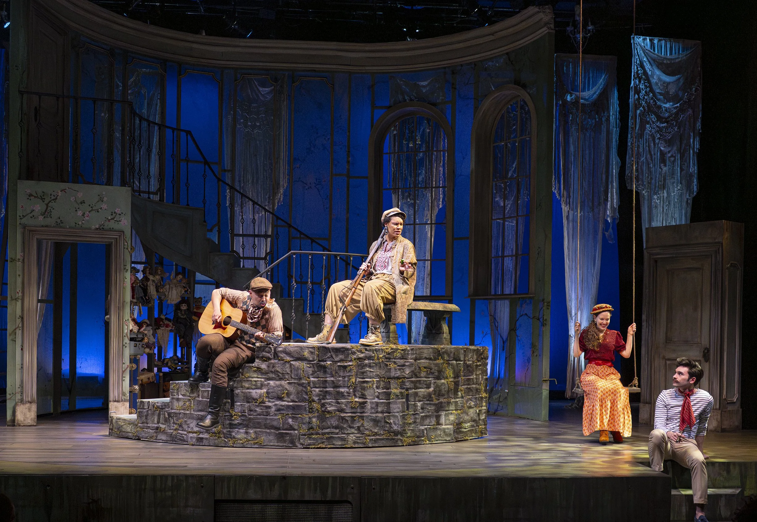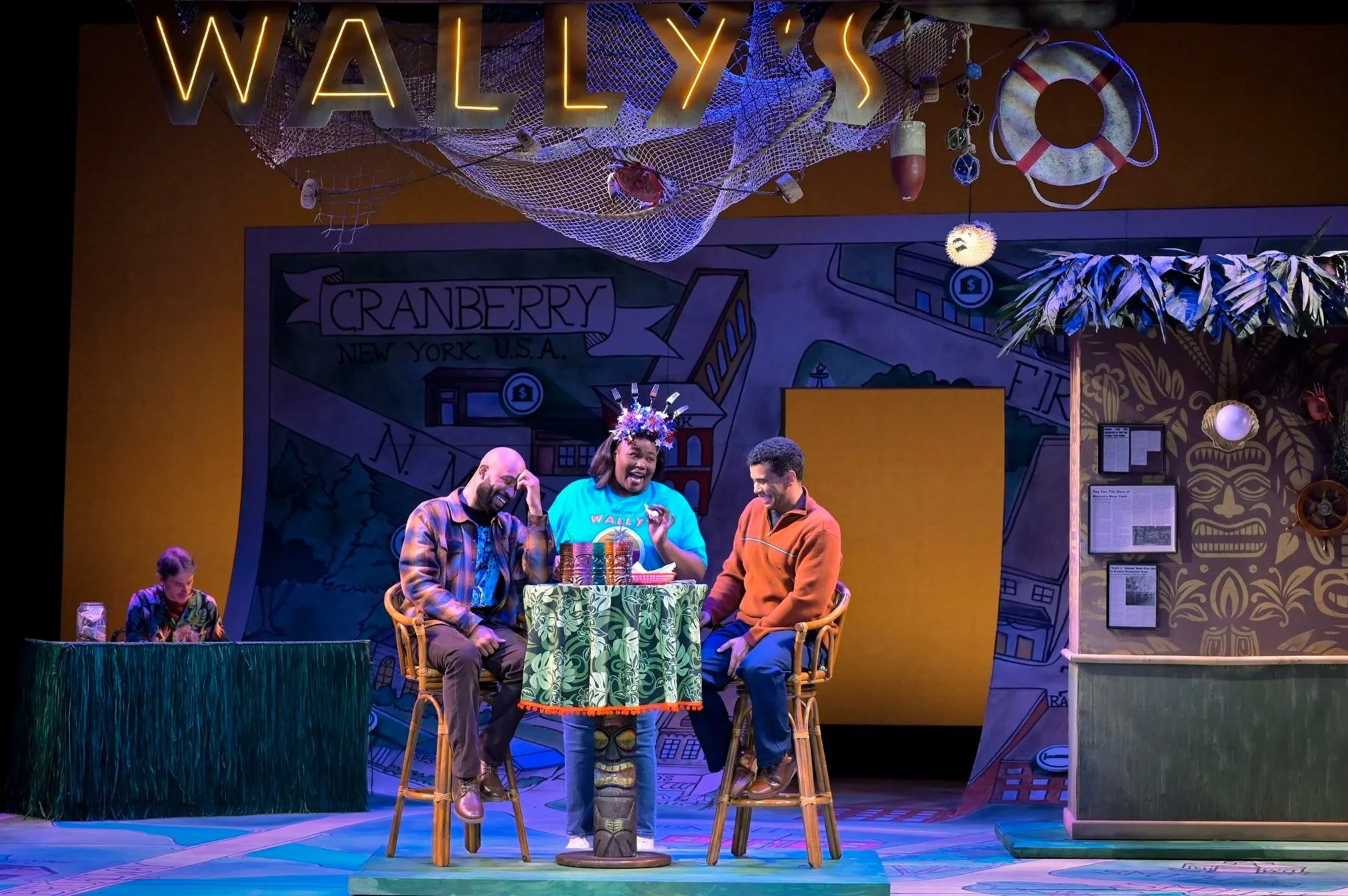 Directed by Bill English, music direction by Dave Dobrusky, choreography by Nicole Helfer, scenic design by Nina Ball, costumes by Abra Berman, lighting by Michael Oesch, and sound by James Ard.