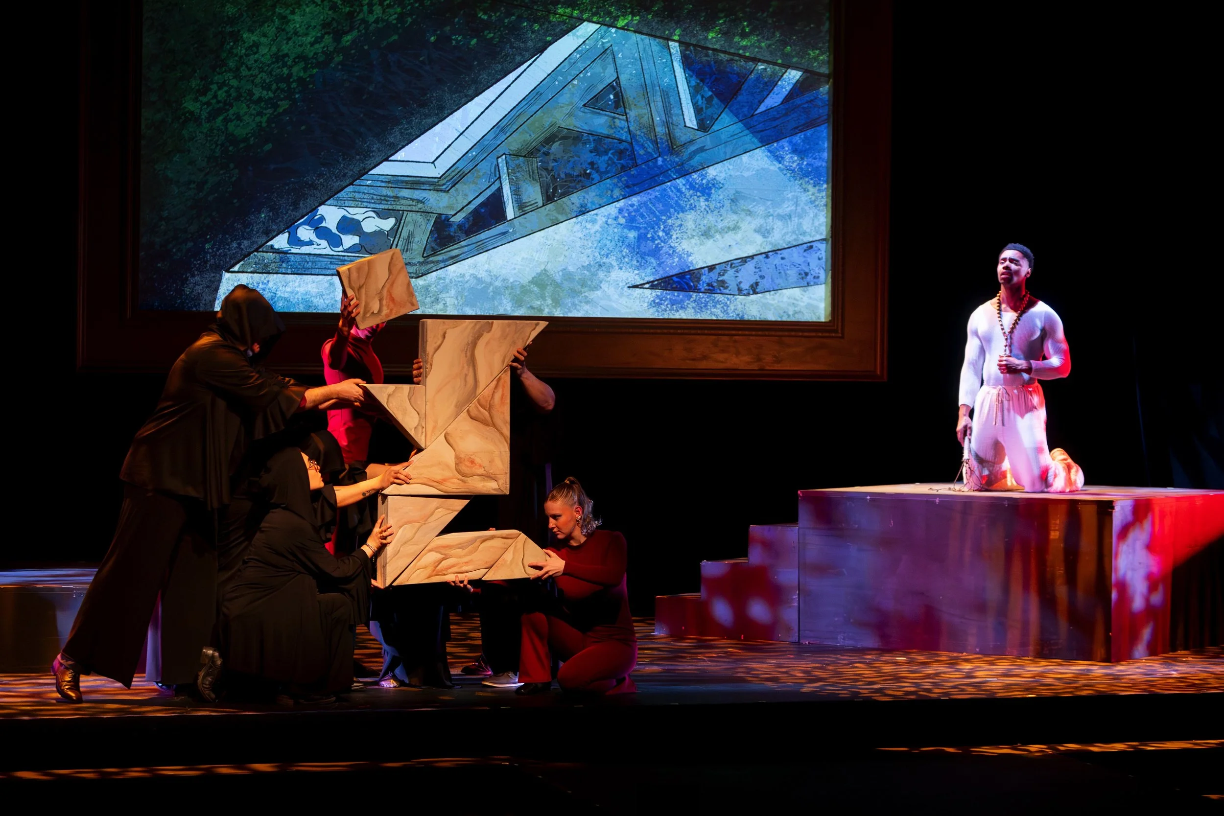 “The Monsters” by Ngozi Anyanwu, directed by Tamilla Woodard, choreographed by Adesola Osakalumi, scenic design by Nina Ball, costumes by Celeste Jennings, lighting by Reza Behjat, sound by Bailey Trierweiler&Uptownworks, co-produced with La Jolla Playhouse, at Berkeley Repertory Theatre. Info: berkeleyrep.org - to May 3, 2026. Cast: Ngozi Anyanwu and Sullivan Jones.
