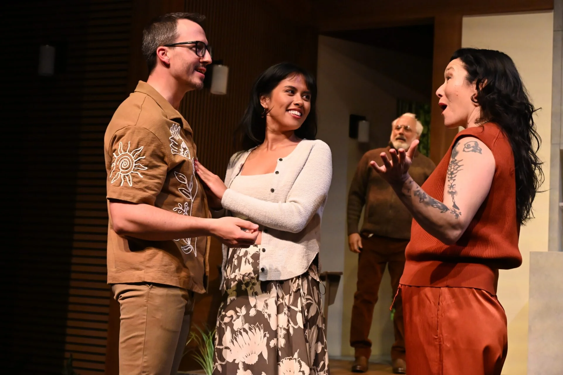 As the doubting husband and Board President, Chris Harper plays Ellsworth Snow with a subtle warmth. Initially a conservative foil, he evolves once he sees his wife shine onstage. In a show-stopping gesture, he dons a dress “in solidarity.” Harper ushers the production to life.
