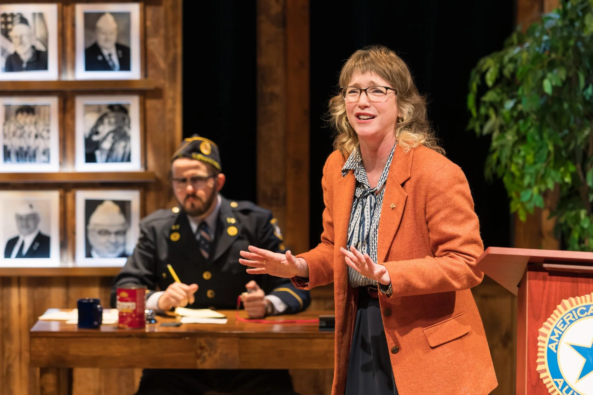 Mary Katherine Patterson charms as June Bennett, the play’s spirited ingénue, with a starry-eyed innocence straight from a film poster. June’s earnest activism grounds the play firmly in the 40s, embodying the optimism and urgency of young women stepping into new roles during wartime.